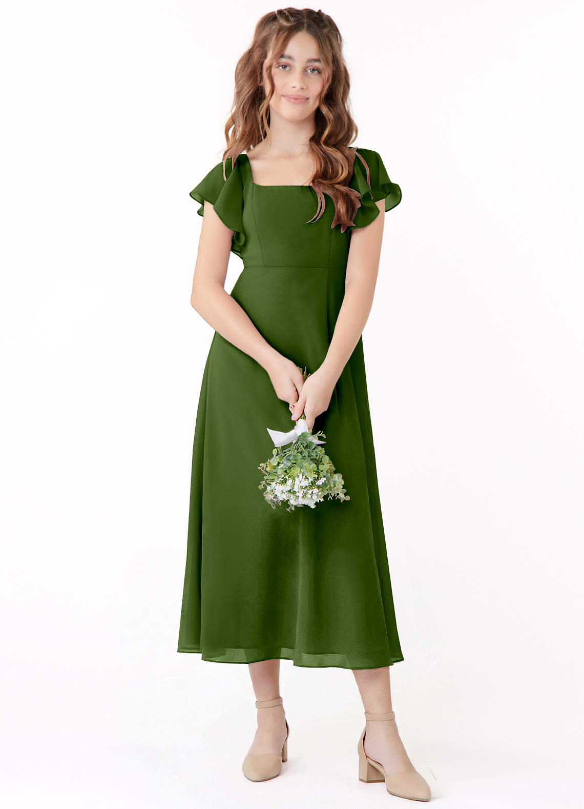 Vestido de Oliva de Gasa de Corte en A con Volante