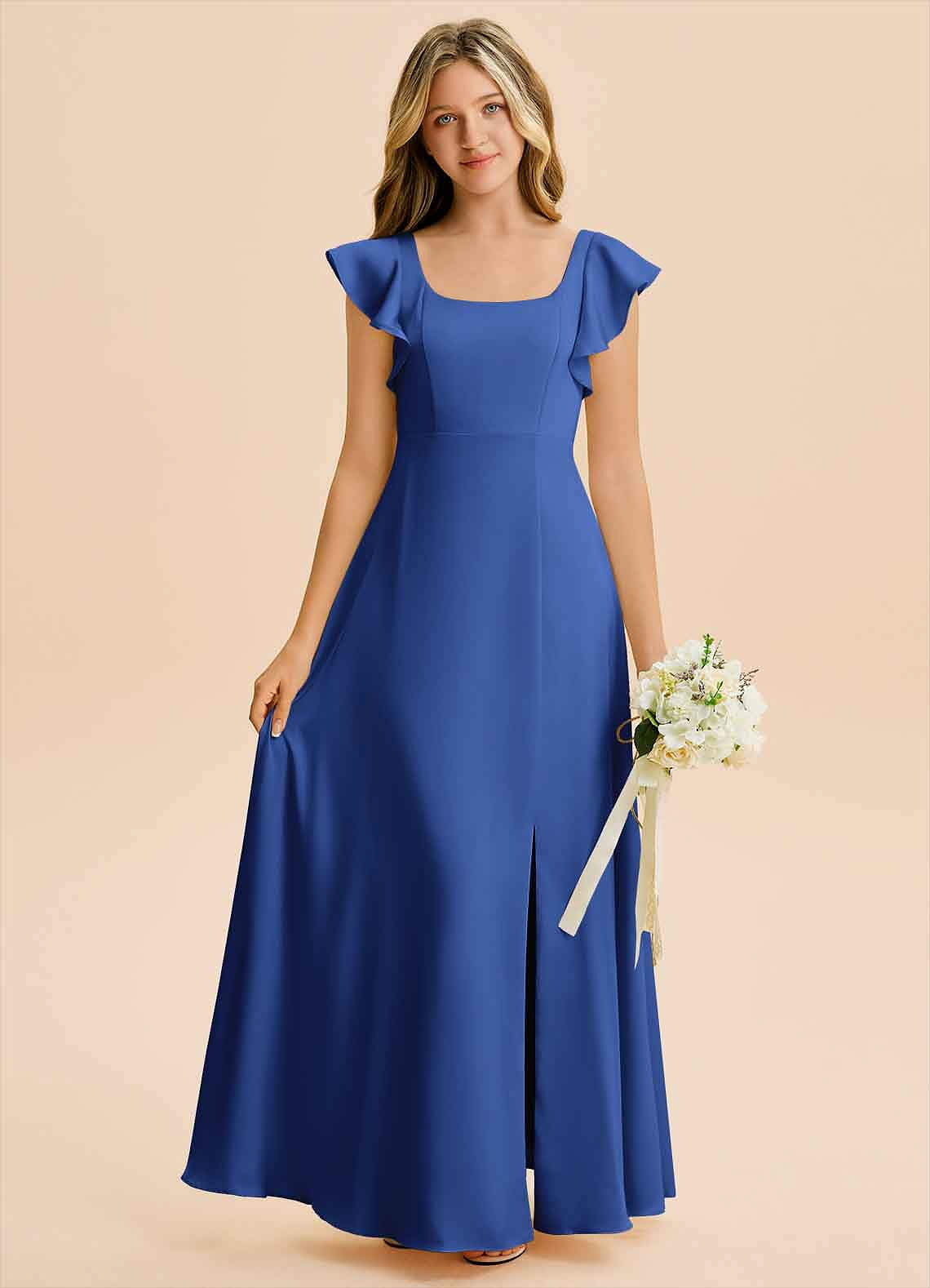 Vestido de Azul Real de Satén Elástico de Corte en A con Corte Lateral