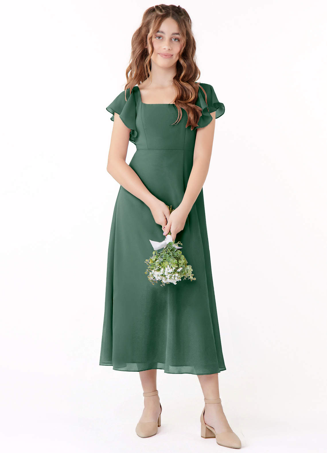 Vestido de Musgo Marino de Gasa de Corte en A con Volante