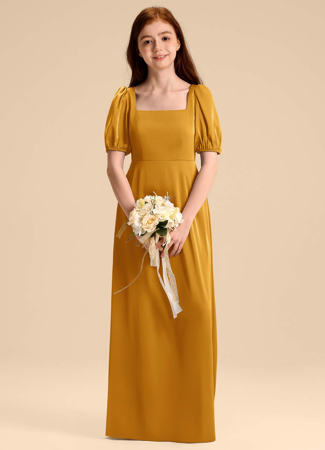 Vestido de Caramelo de Satén Elástico de Corte en A con Lazo