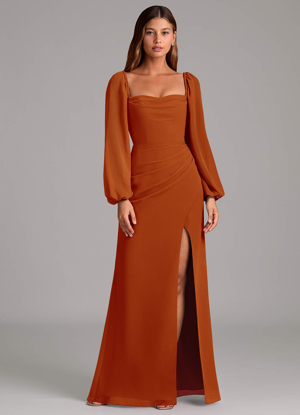 Vestido de Pimenton de Gasa de Corte Sirena con Manga larga