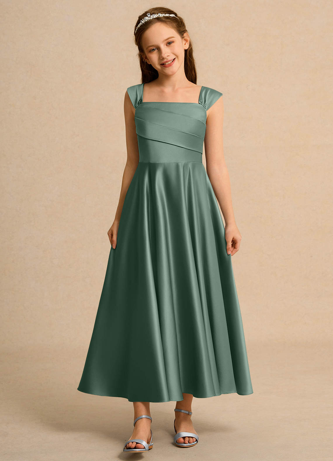 Vestido de Eucalipto de Satin Mate de Corte en A con Plisado