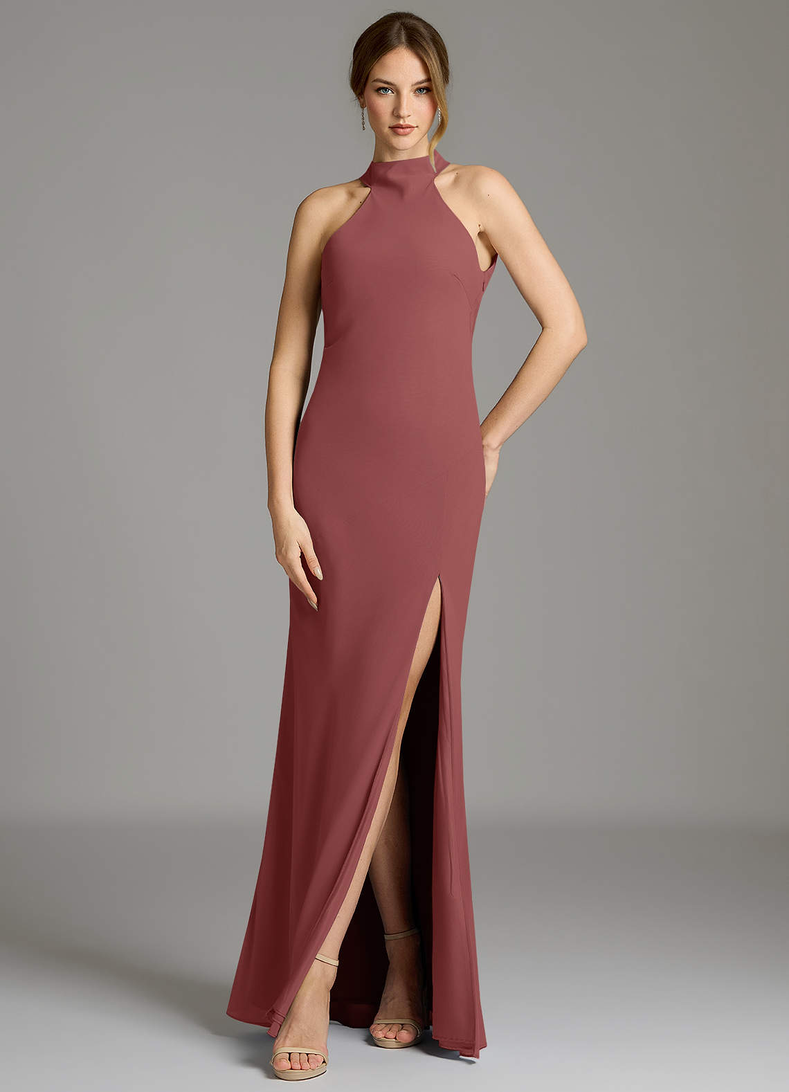 Vestido de Amatista de Gasa de Corte Sirena con Plisado