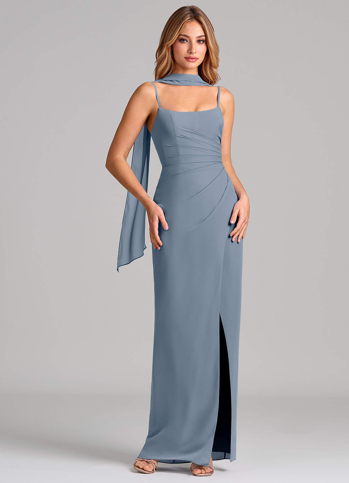 Vestido de Crepúsculo de Gasa de Corte Recto con Plisado