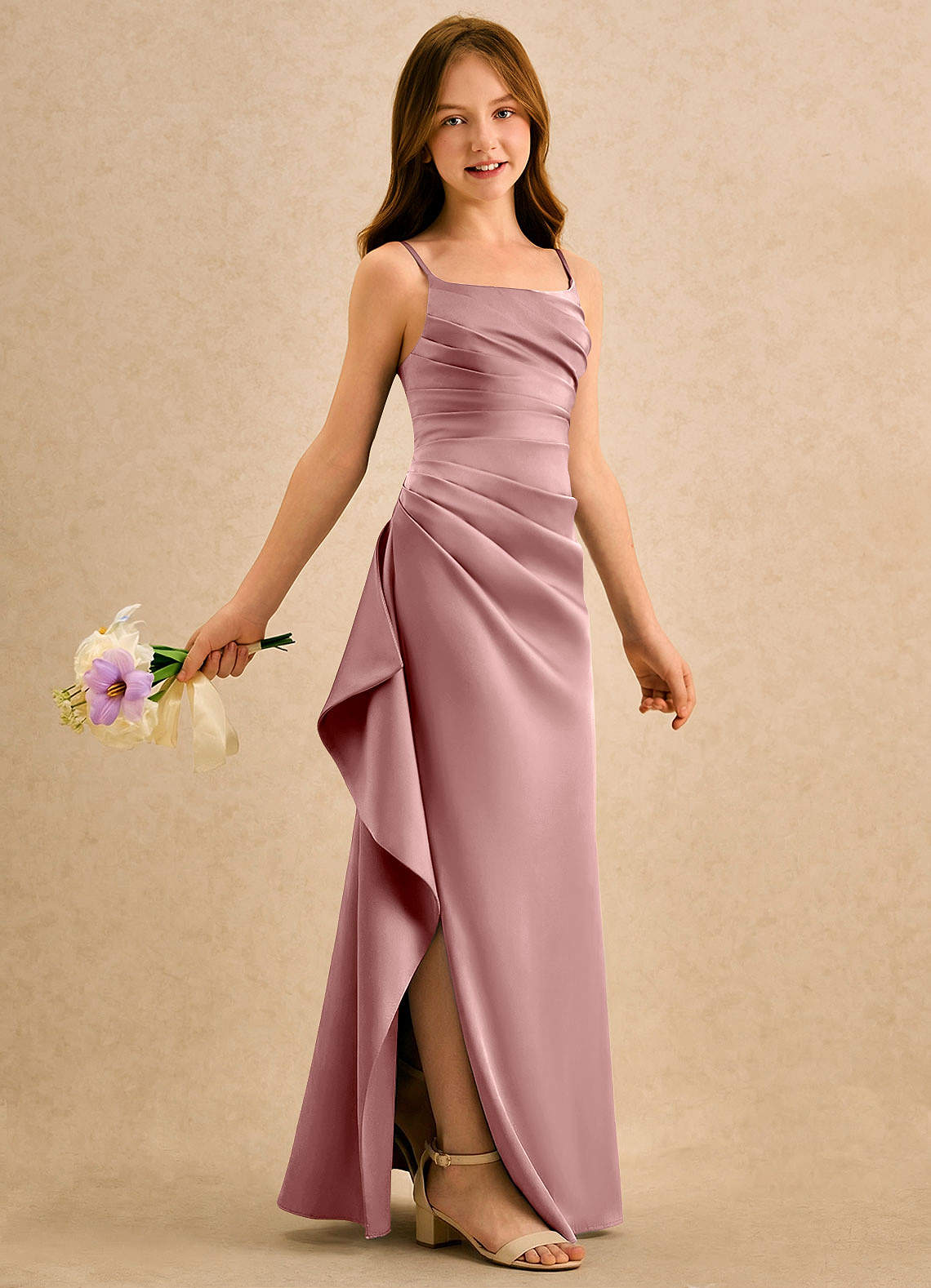 Vestido de Rosa Polvorienta de Satén Elástico de Corte en A con Plisado