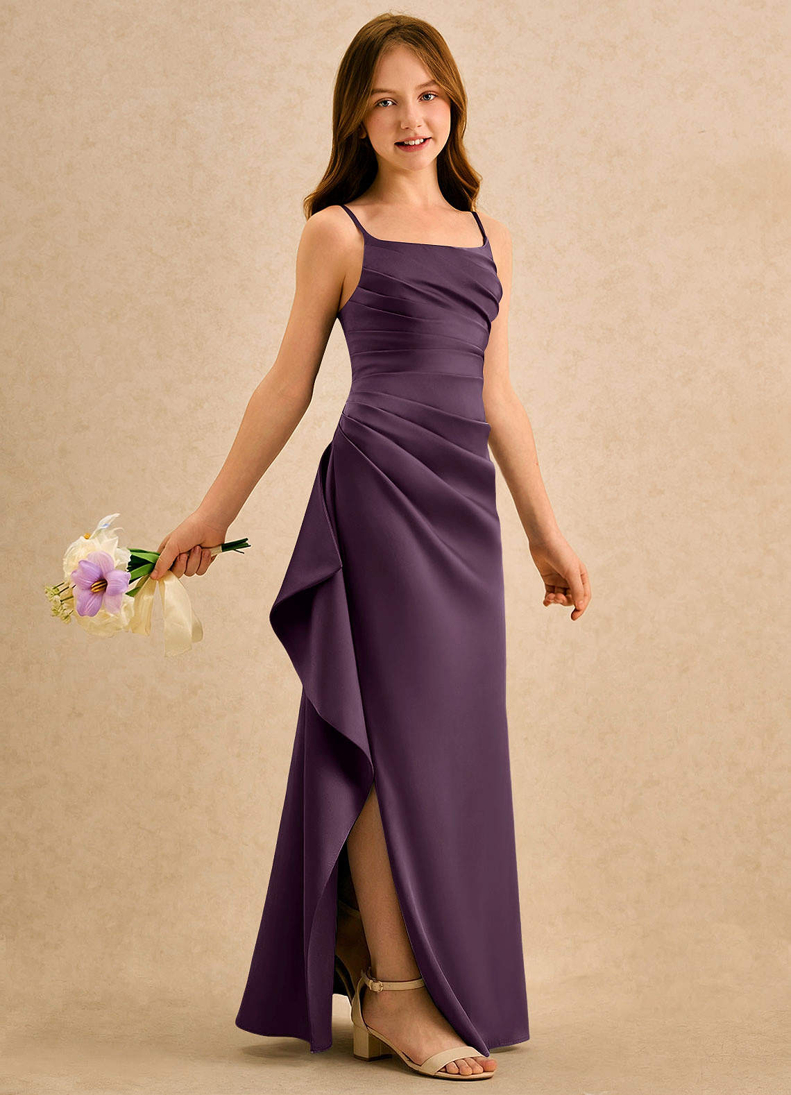 Vestido de Ciruela de Satén Elástico de Corte en A con Plisado