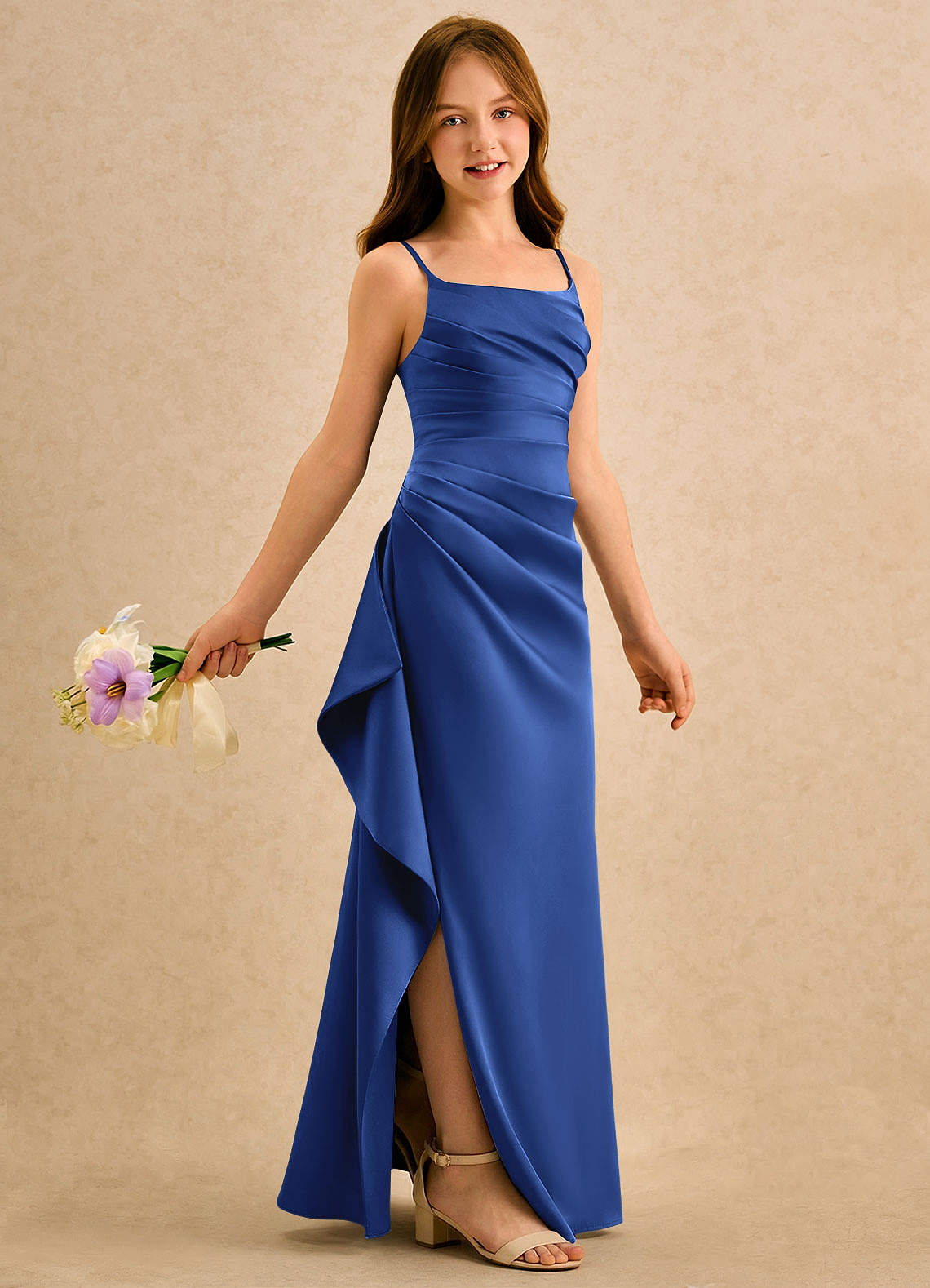 Vestido de Azul Real de Satén Elástico de Corte en A con Plisado
