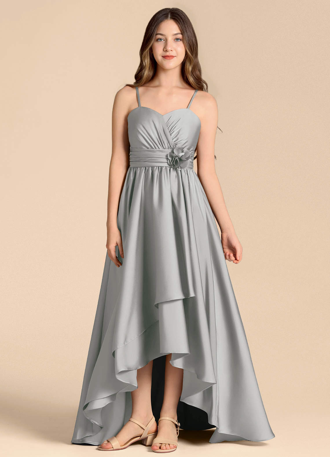 Vestido de Plata de Satén Elástico de Corte en A con Escote de Corazón