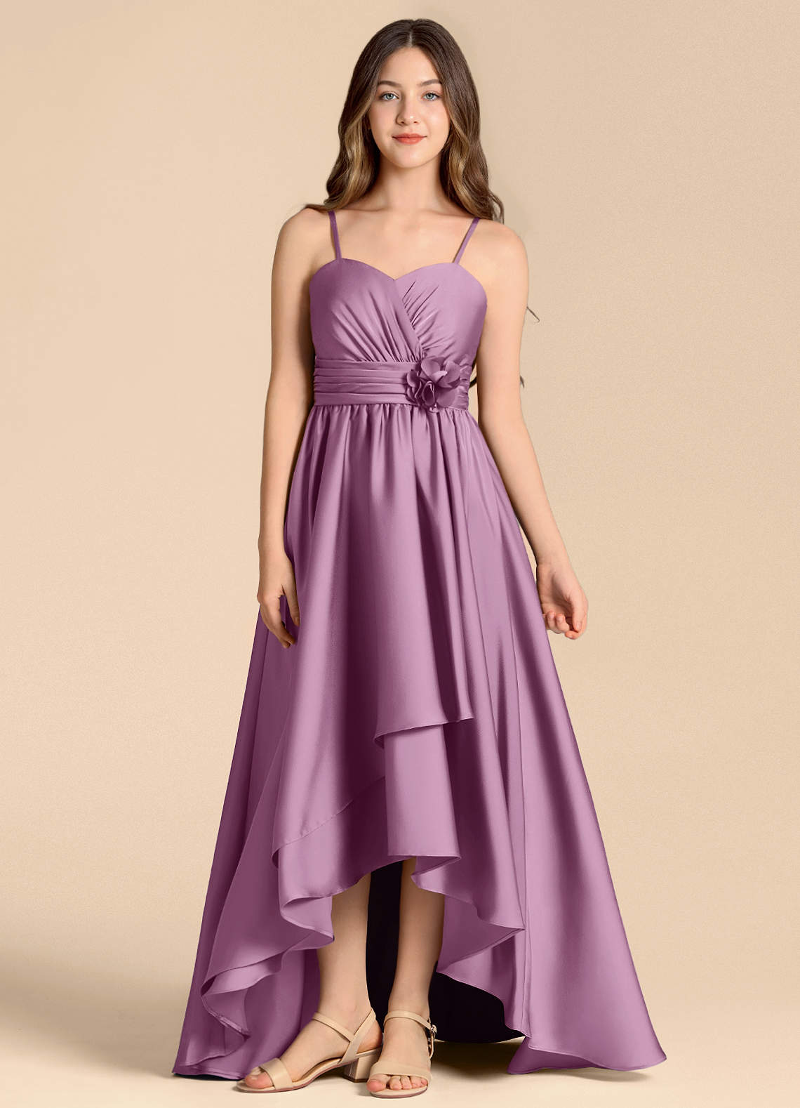 Vestido de Glicinia de Satén Elástico de Corte en A con Escote de Corazón