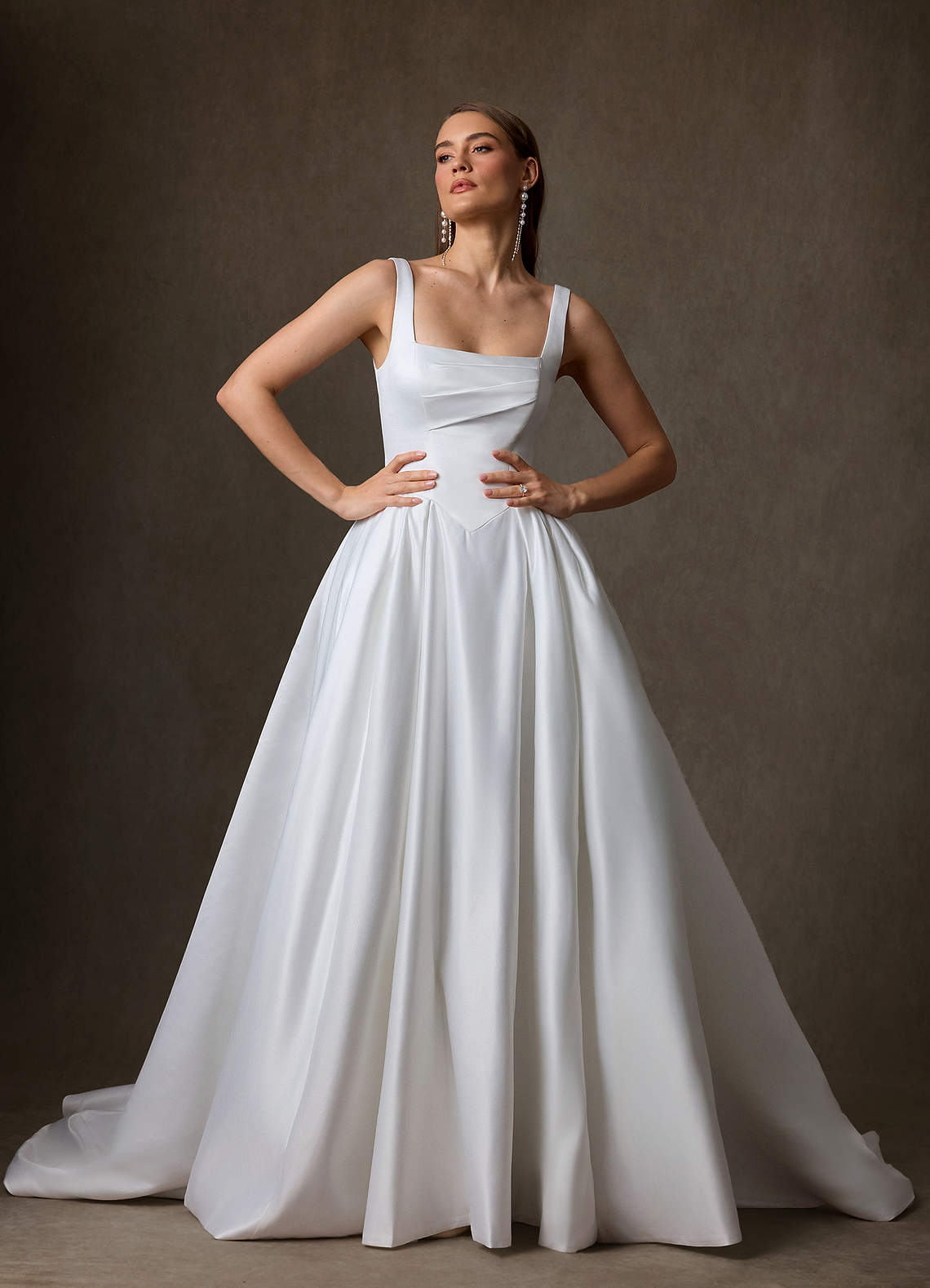 Vestido de Diamante Blanco de Satén de Corte Princesa con Con bolsillos