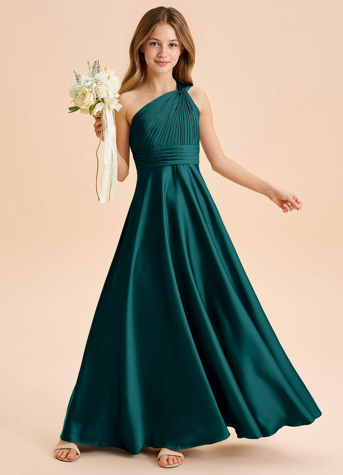 Vestido de Pavo Real de Satén Elástico de Corte en A con Plisado
