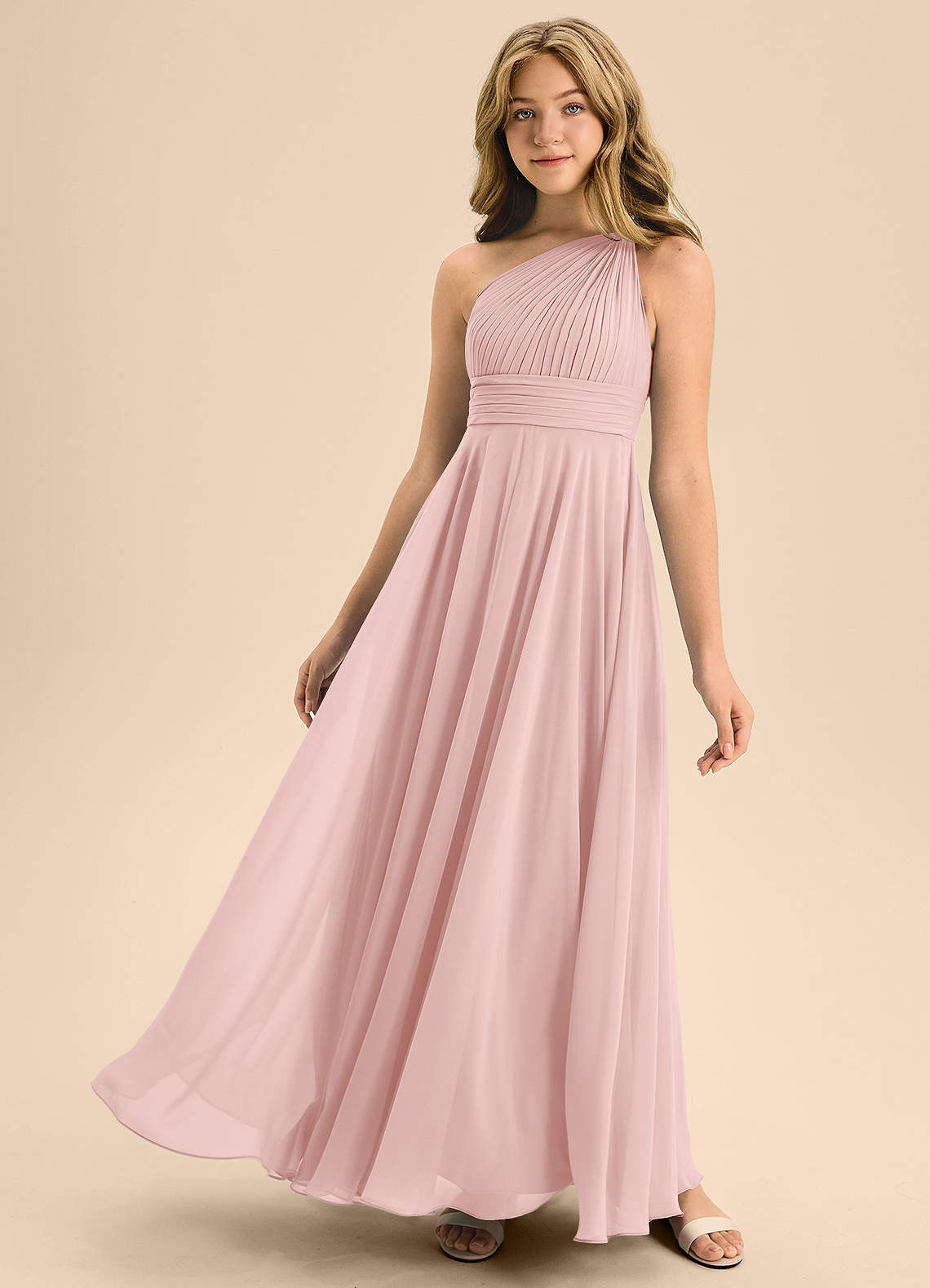 Vestido de Rosa Empolvado de Gasa de Corte en A con Plisado
