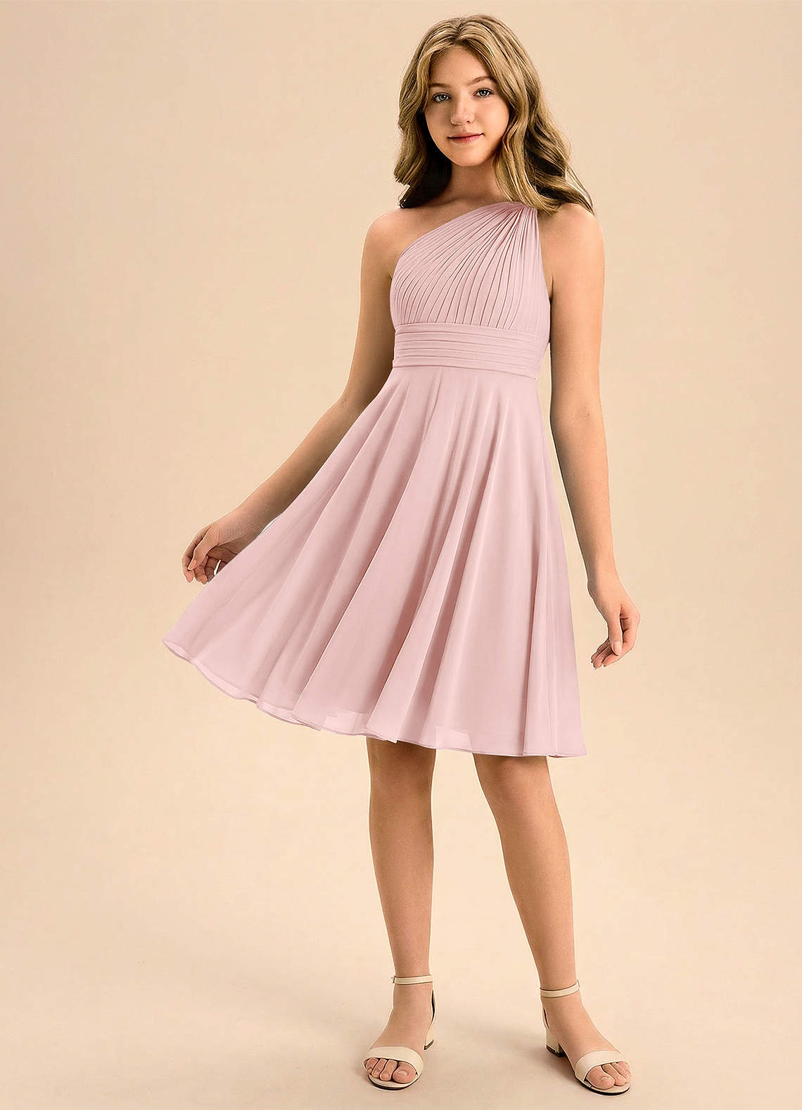 Vestido de Rosa Empolvado de Gasa de Corte en A con Plisado