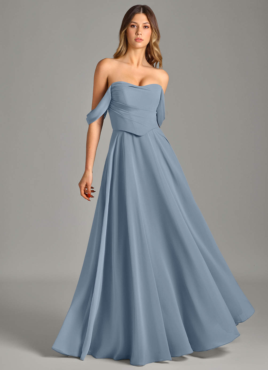 Vestido de Azul Polvoriento de Gasa de Corte en A Convertible con Vestidos sin tirantes