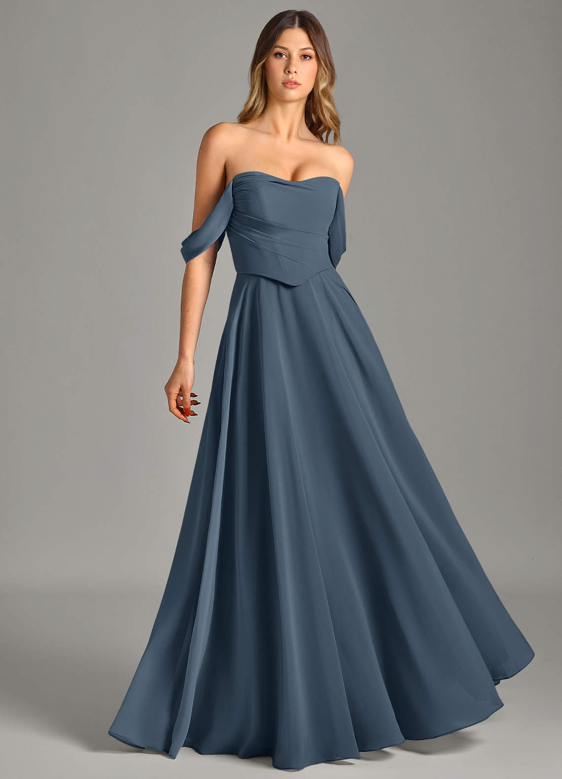 Vestido de Neptuno de Gasa de Corte en A Convertible con Vestidos sin tirantes