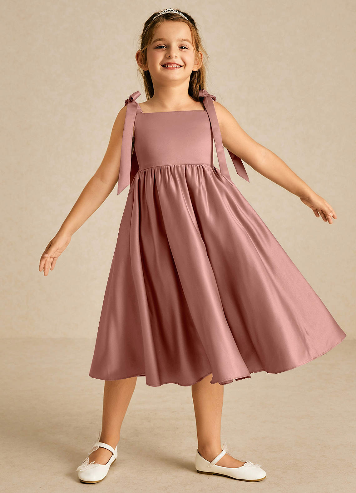 Vestido de Rosa De Cedro de Satin Mate de Corte En A con Lazo