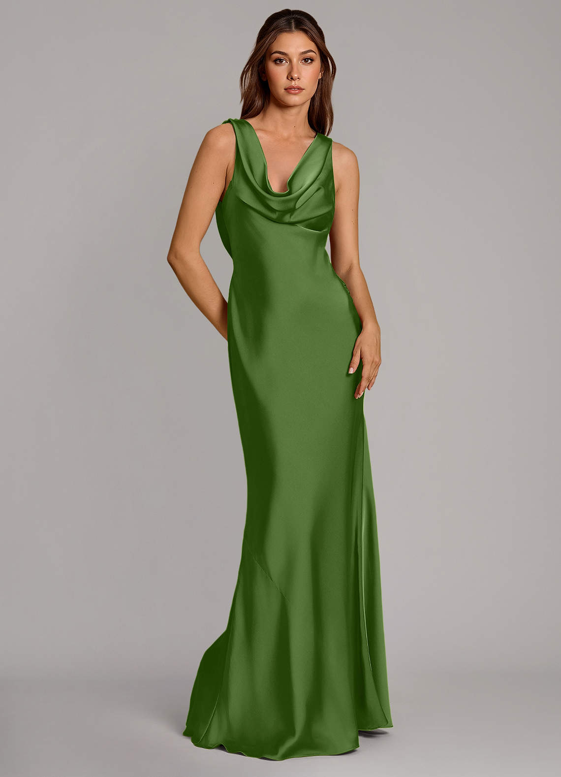 Vestido de Albahaca de Satén Elástico de Corte Sirena