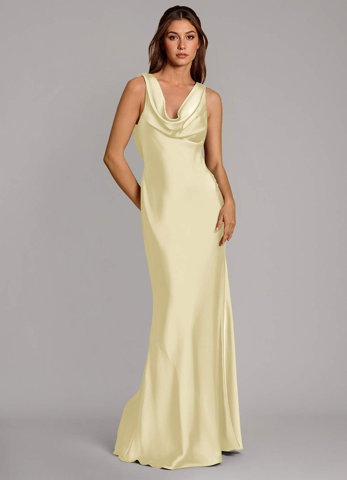 Vestido de Sorbete De Limón de Satén Elástico de Corte Sirena