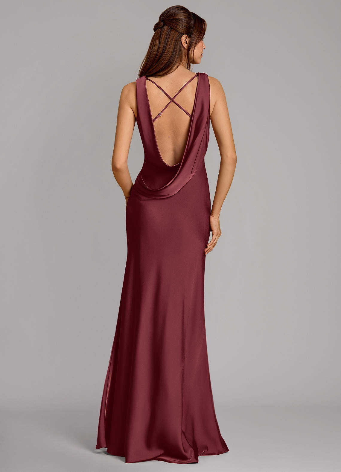Vestido de Merlot de Satén Elástico de Corte Sirena