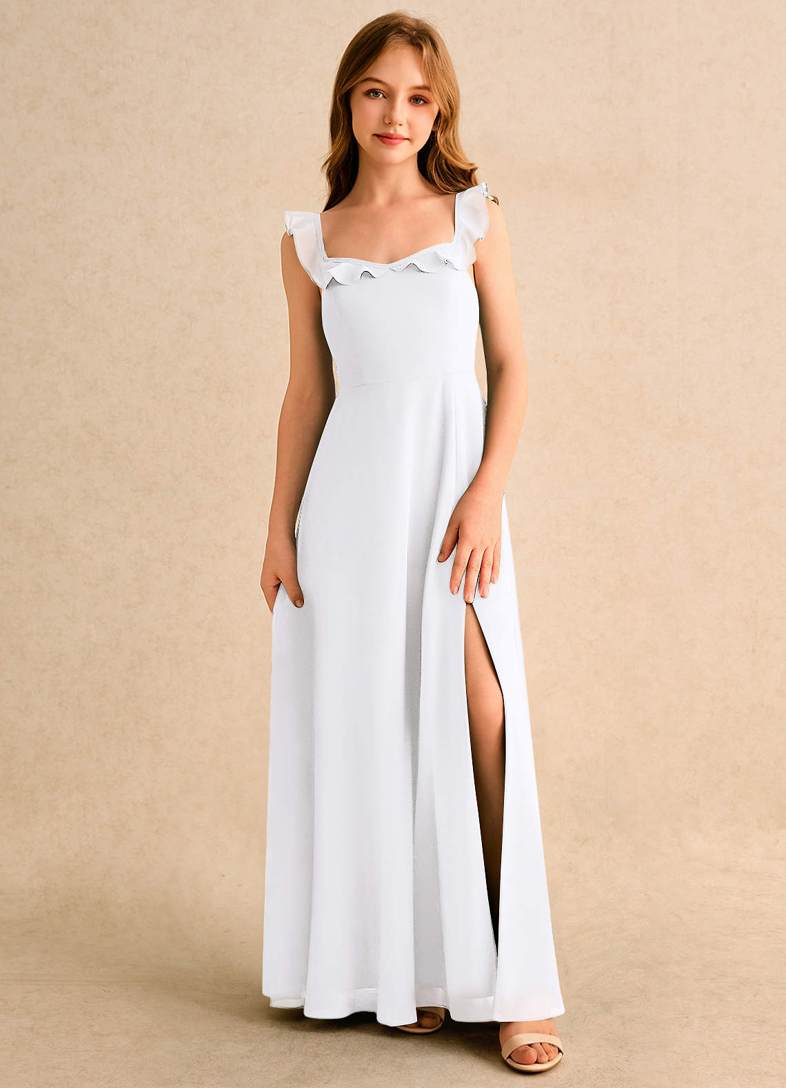 Vestido de Blanco de Gasa de Corte en A con Sin mangas