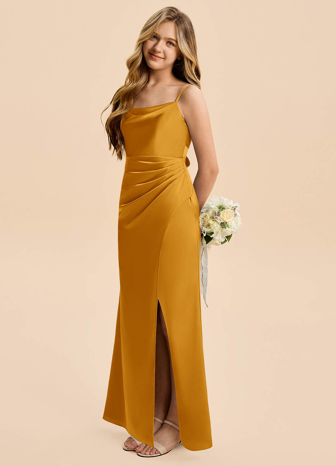 Vestido de Caramelo de Satén Elástico de Corte en A con Plisado