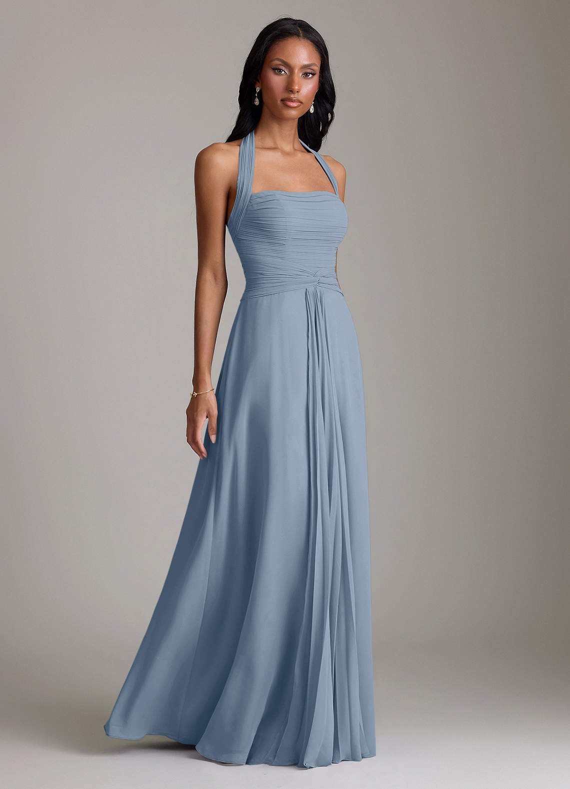 Vestido de Azul Polvoriento de Gasa de Corte en A con Plisado