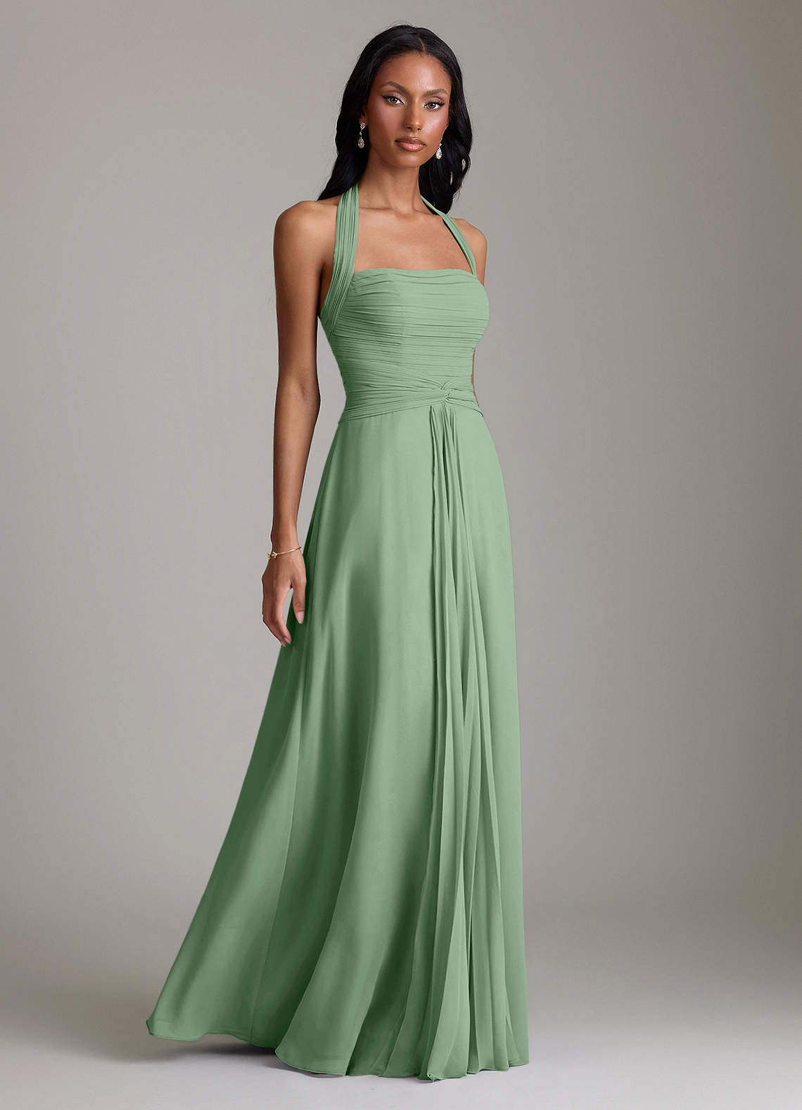 Vestido de Matcha de Gasa de Corte en A con Plisado