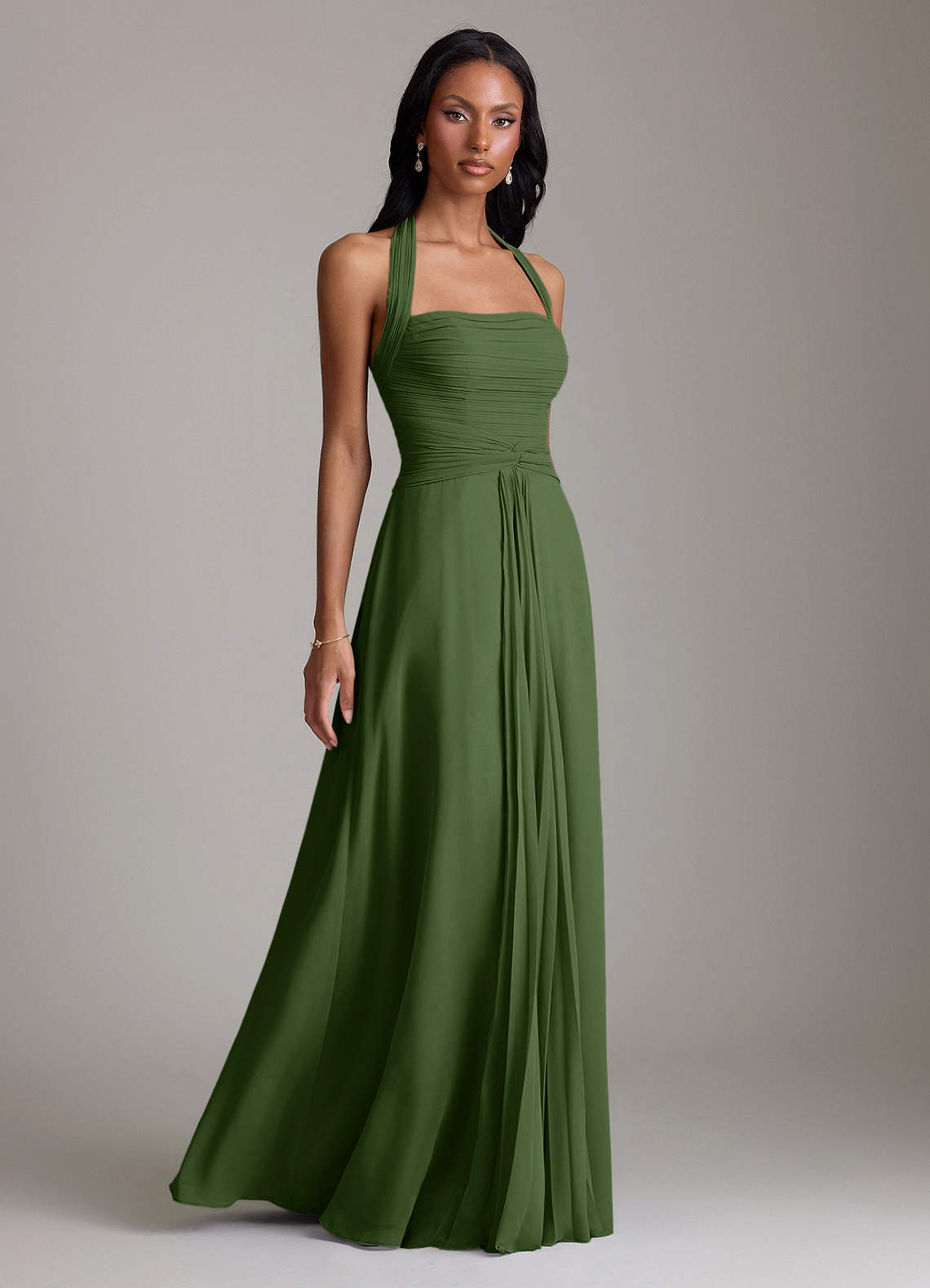 Vestido de Oliva de Gasa de Corte en A con Plisado