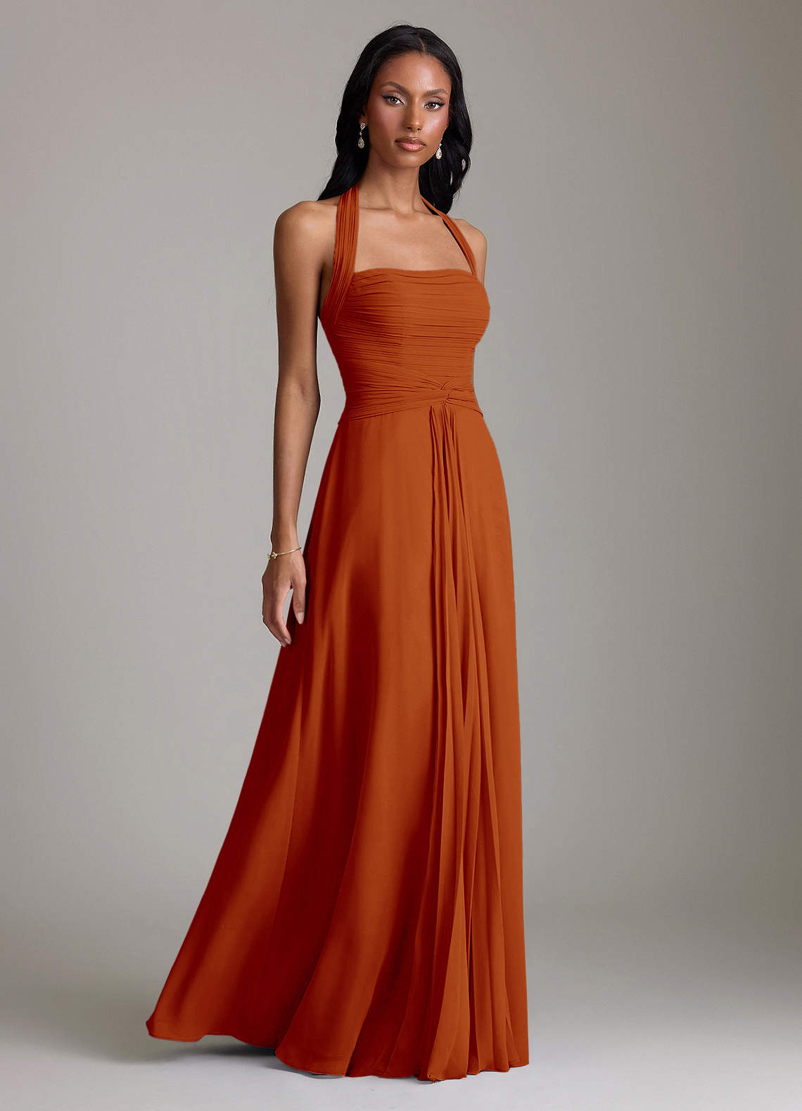 Vestido de Pimenton de Gasa de Corte en A con Plisado