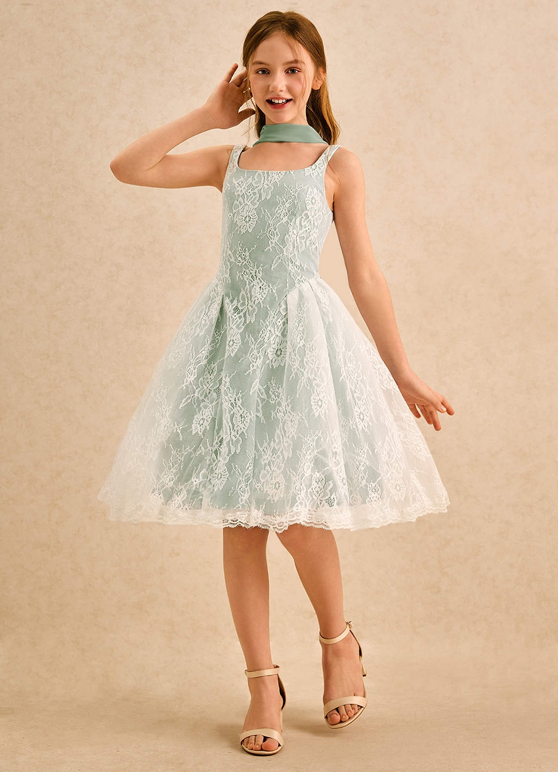 Vestido de Salvia Polvorienta de Encaje de Corte en A
