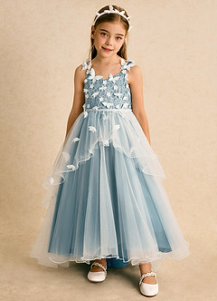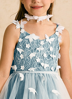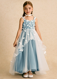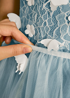 Vestido de Marfil Azul Malhumorado de Tul de Princesa con Encaje