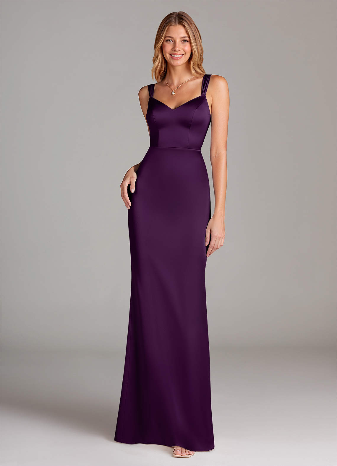 Vestido de Uva de Satén Elástico de Corte Recto con Plisado