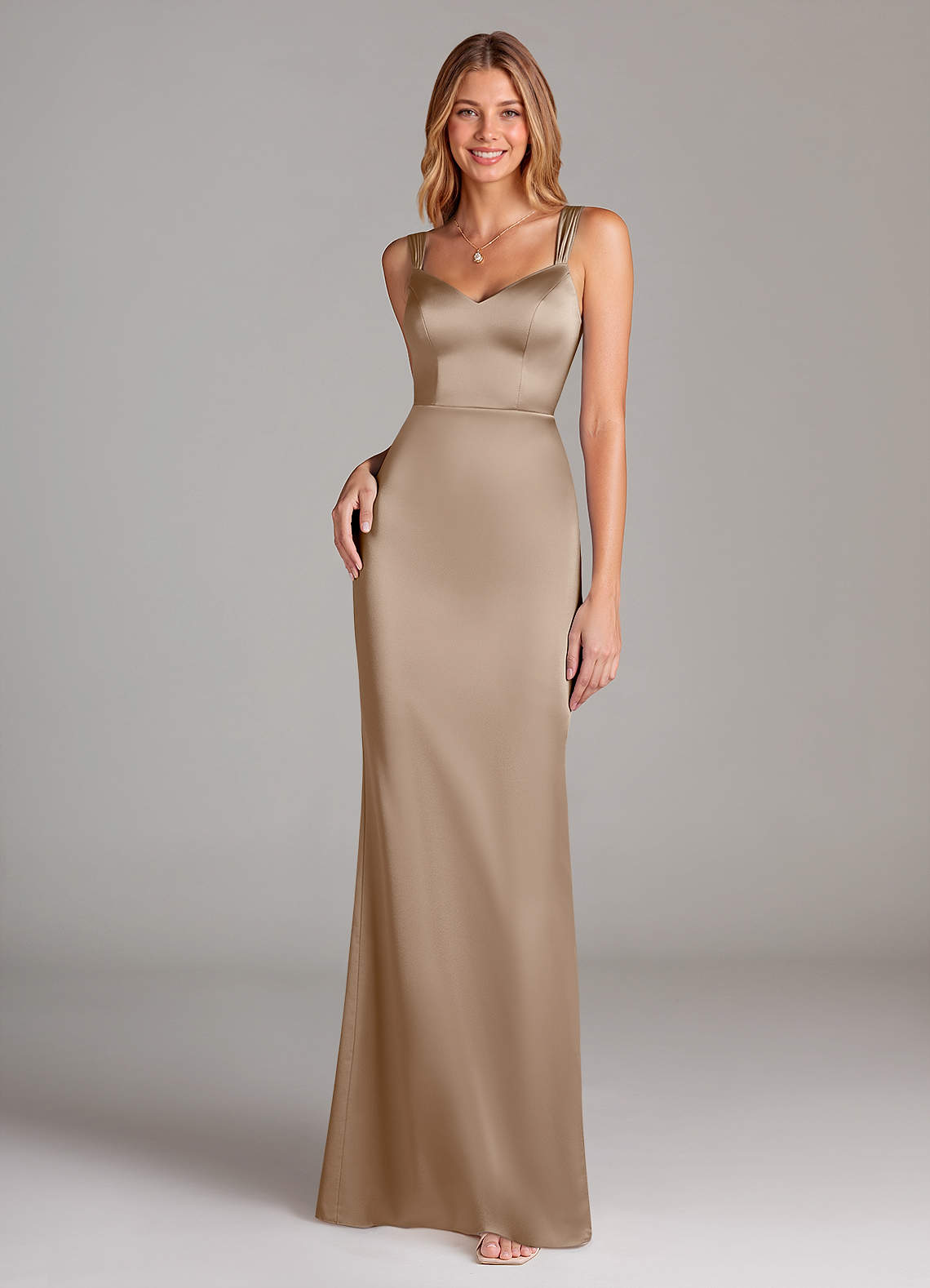 Vestido de Gris Pardo de Satén Elástico de Corte Recto con Plisado