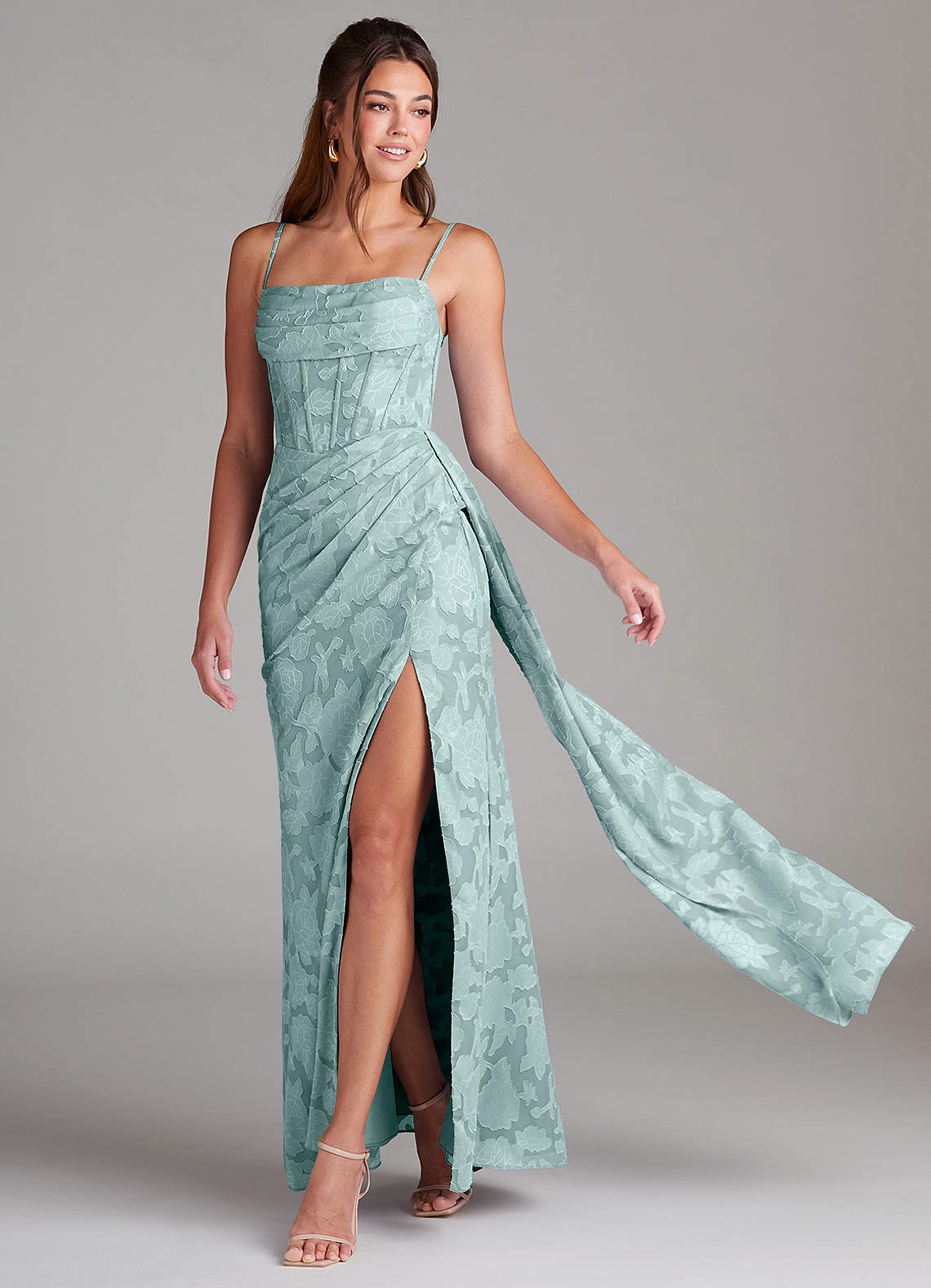 Vestido de Neblina de Devorado Floral de Corte Recto con Plisado