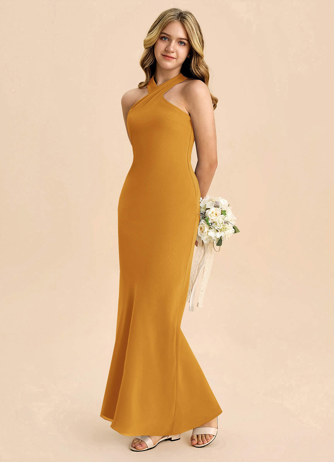 Vestido de Caramelo de Gasa de Corte Recto con Plisado