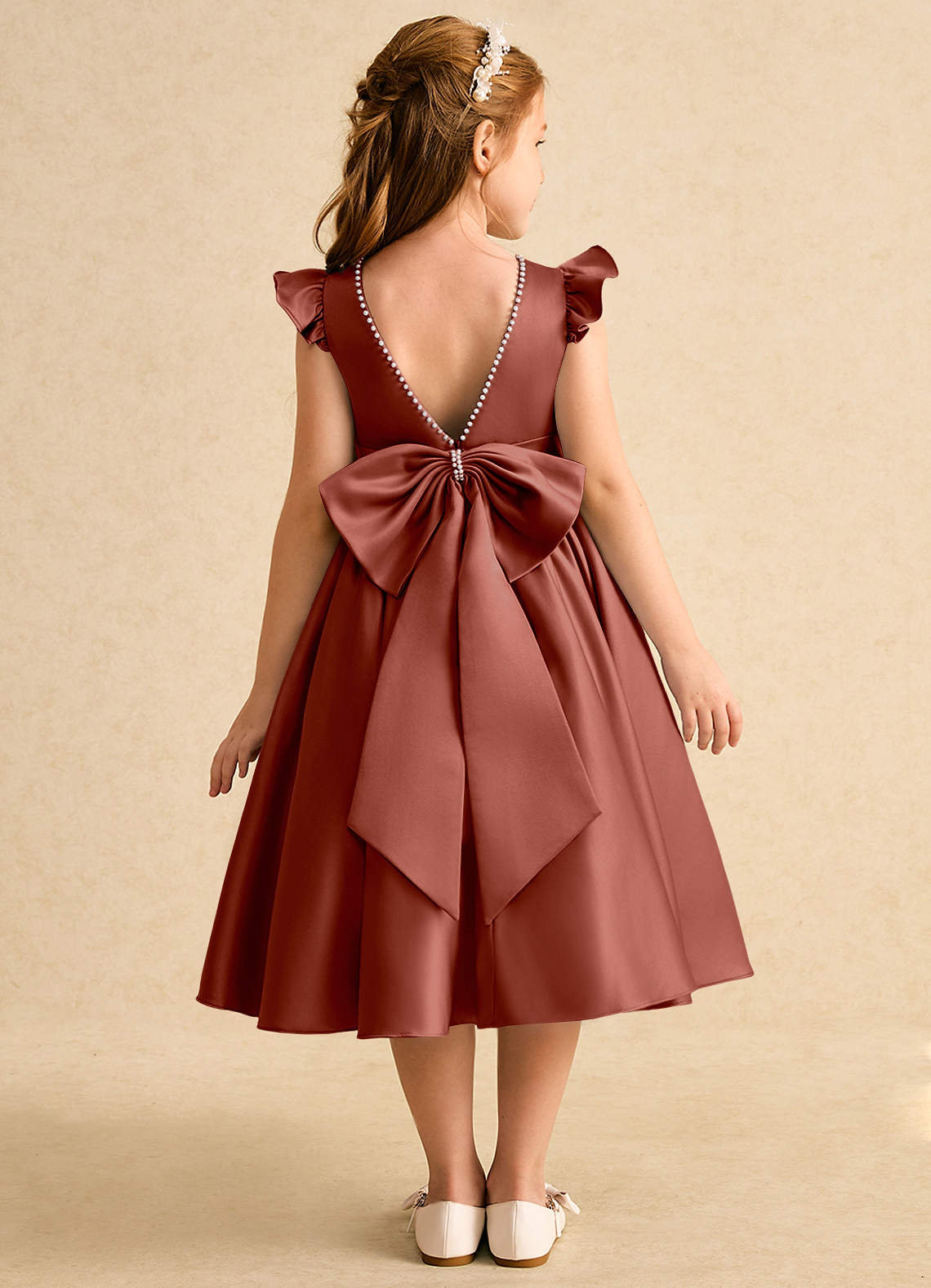 Vestido de Castaño de Satin Mate de Corte en A con Lazo