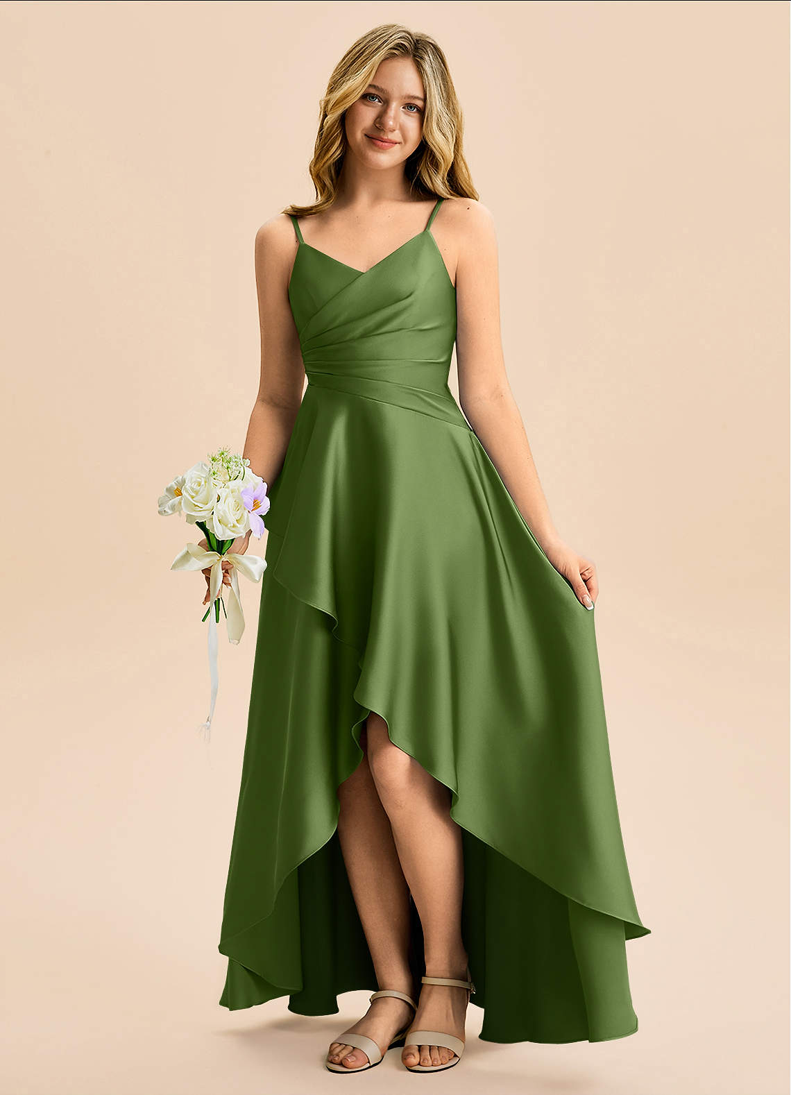 Vestido de Enebro de Satén Elástico de Corte en A con Plisado