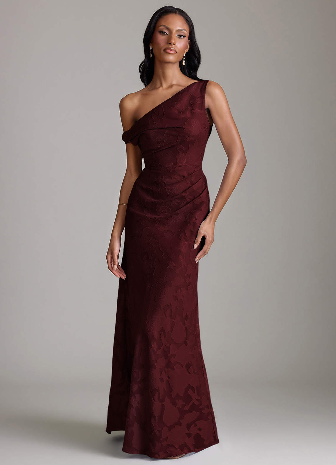 Vestido de Cabernet de Devorado Floral de Corte Sirena con Vestidos sin tirantes