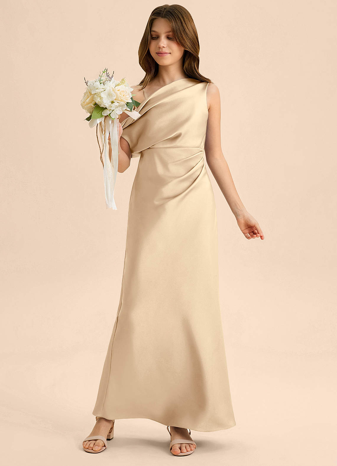 Vestido de Champán de Satén Elástico de Corte Recto con Vestidos sin tirantes