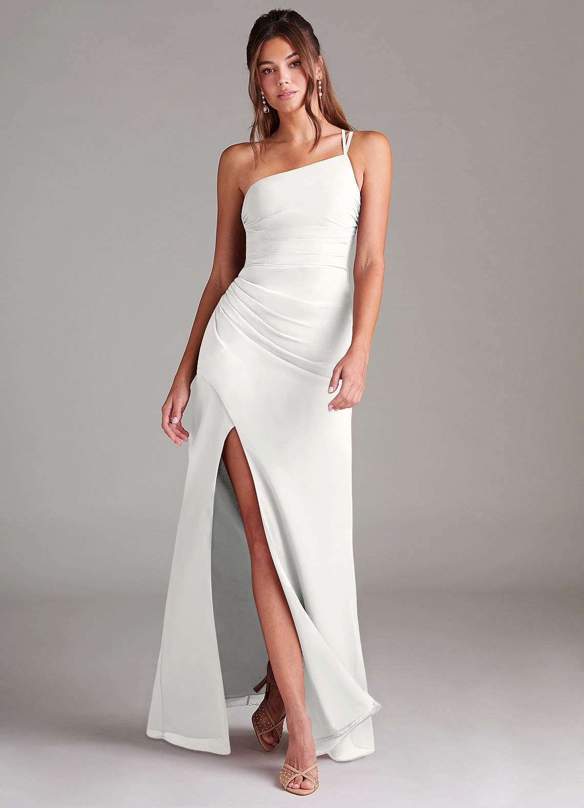 Vestido de Blanco de Gasa de Corte Recto con Hombro unilateral