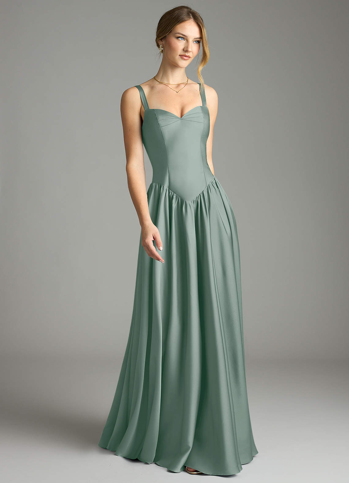 Vestido de Salvia Plateada de Satén Elástico de Corte en A con Corsé