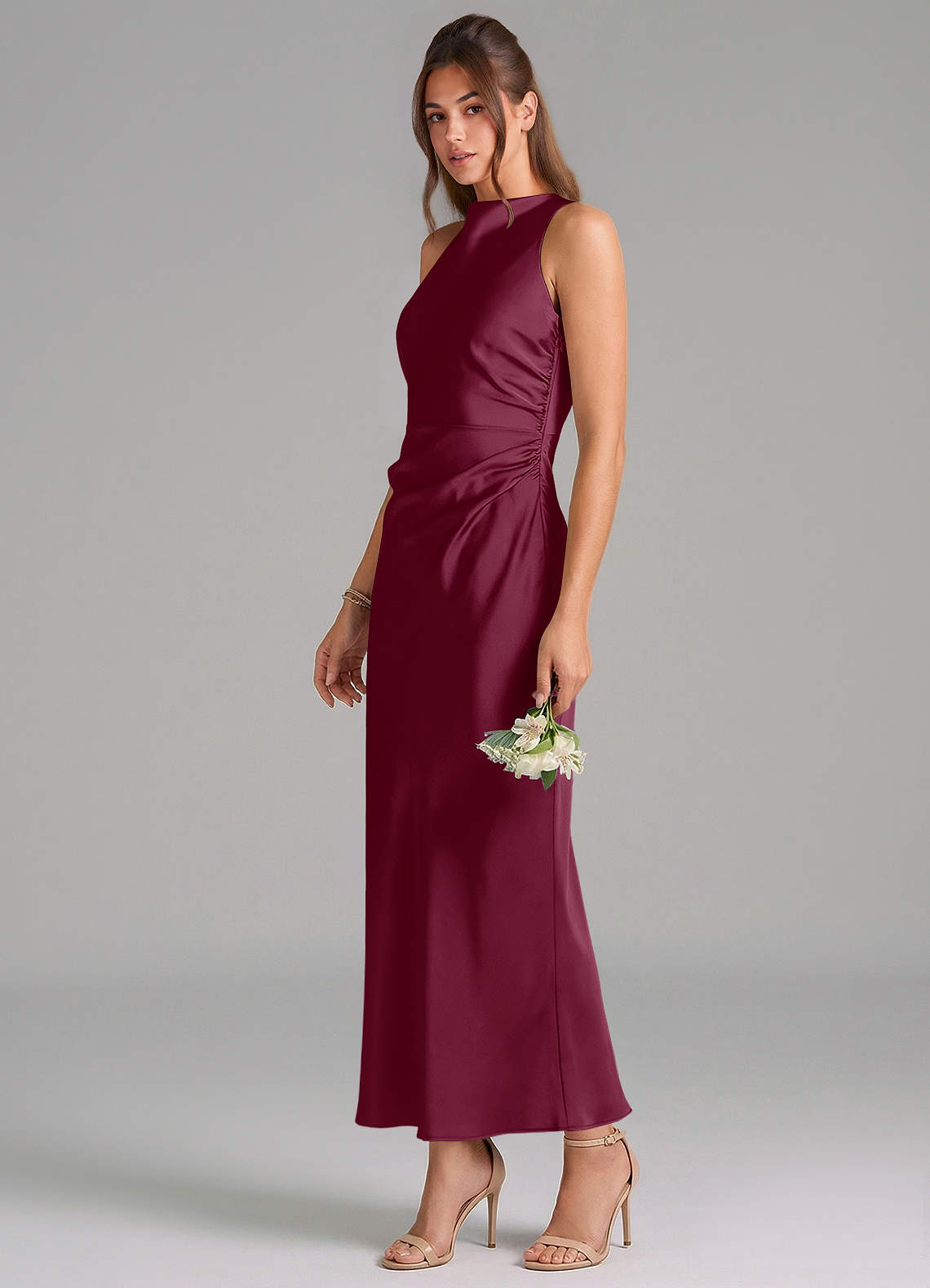 Vestido de Mora de Satén Elástico de Corte Recto con Plisado
