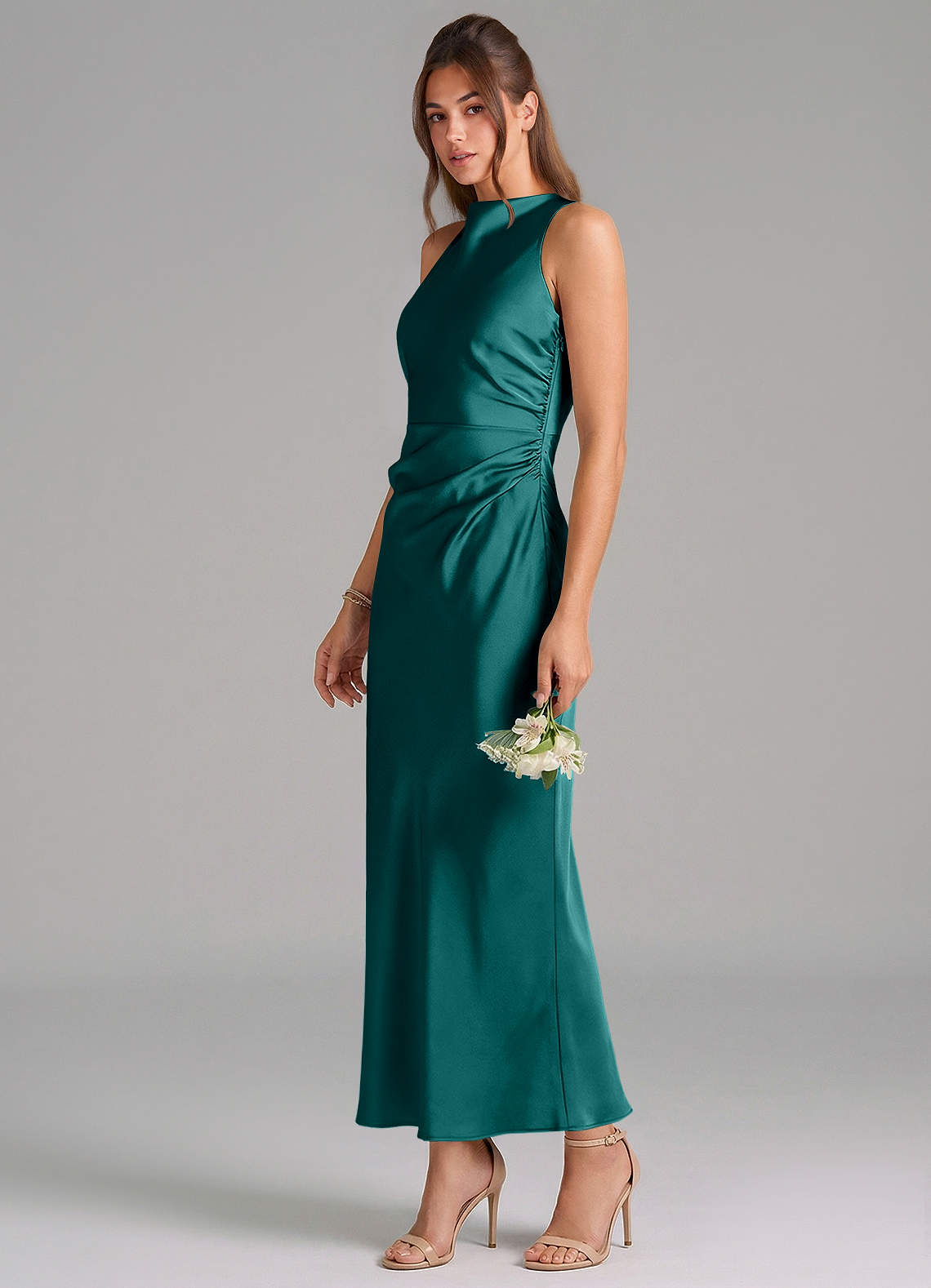 Vestido de Pavo Real de Satén Elástico de Corte Recto con Plisado