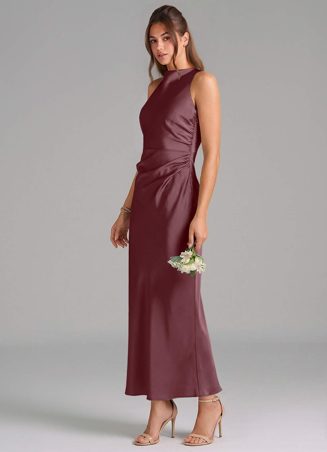 Vestido de Sangrado de Satén Elástico de Corte Recto con Plisado