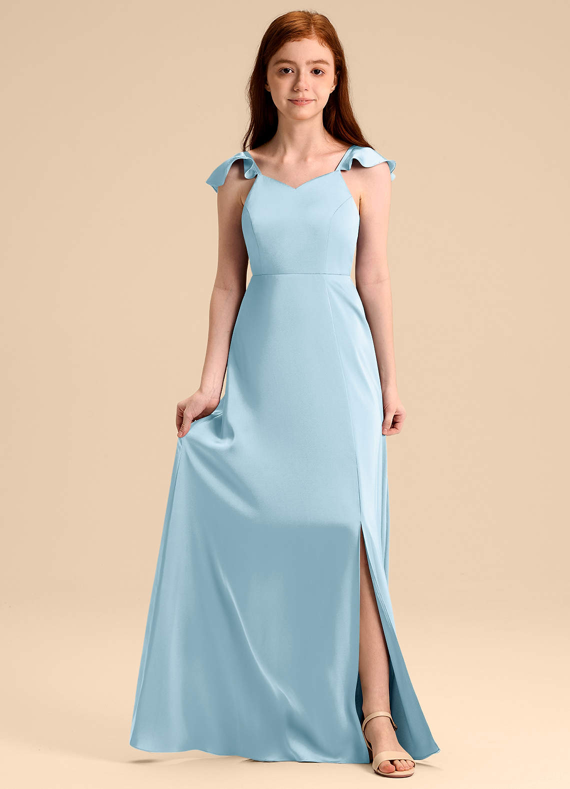 Vestido de Azul Cielo de Satén Elástico de Corte en A con Lazo
