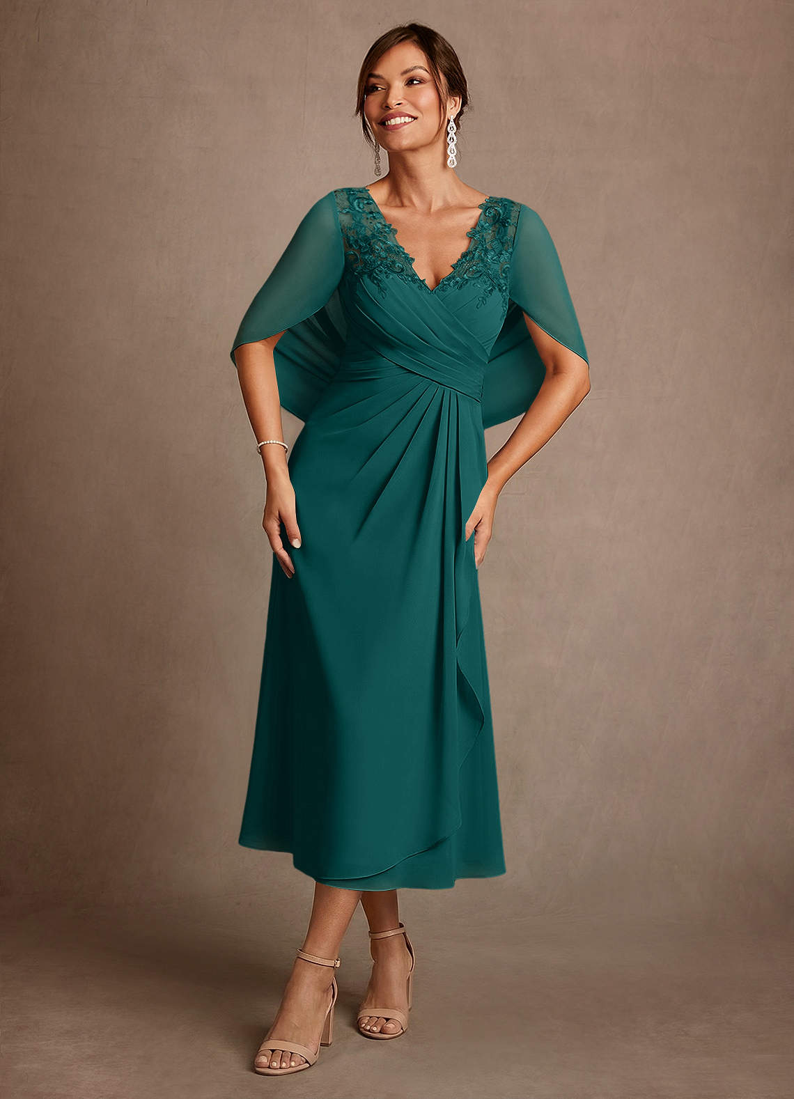 Vestido de Pavo Real de Encaje de Corte en A
