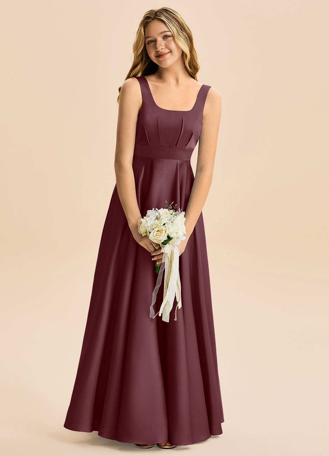 Vestido de Sangrado de Satén Elástico de Corte en A con Plisado