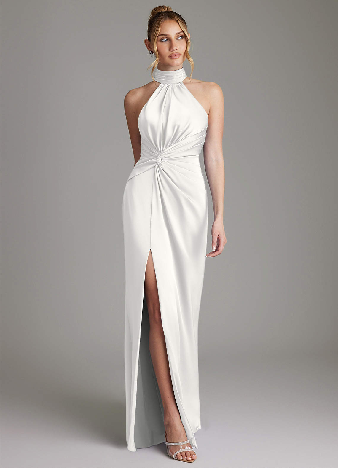 Vestido de Blanco de Satén Elástico de Corte Recto con Plisado
