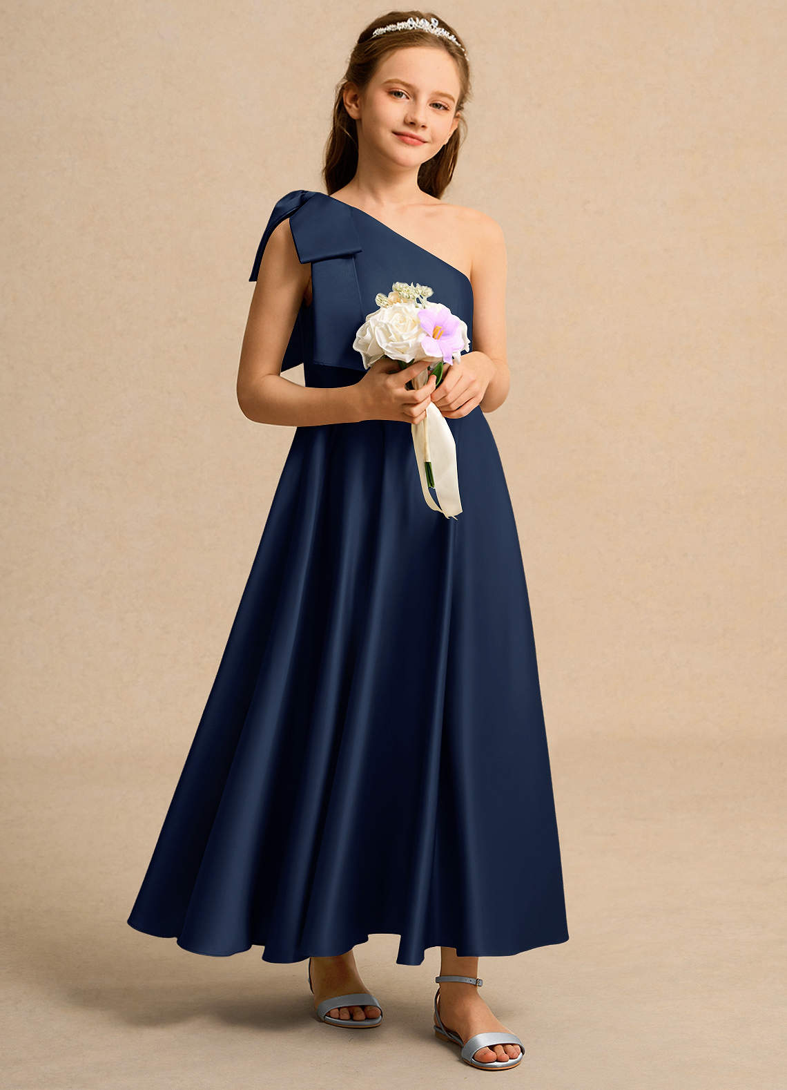 Vestido de Azul Marino Oscuro de Satin Mate de Corte En A con Hombro unilateral
