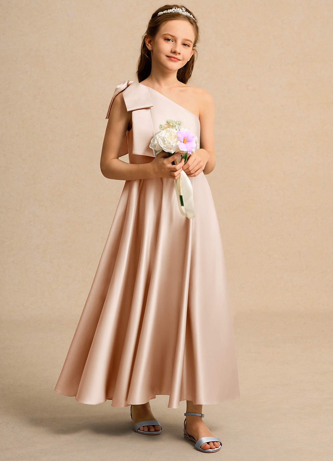 Vestido de Rosa Inglesa de Satin Mate de Corte En A con Hombro unilateral